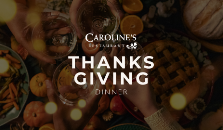 Join us at Caroline’s for a cozy, festive Thanksgiving celebration! Chef Michael Henson has prepared a menu filled with seasonal flavors and holiday favorites. Gather your family and friends to enjoy a thoughtfully crafted feast that blends tradition with creative touches, making the season truly special.